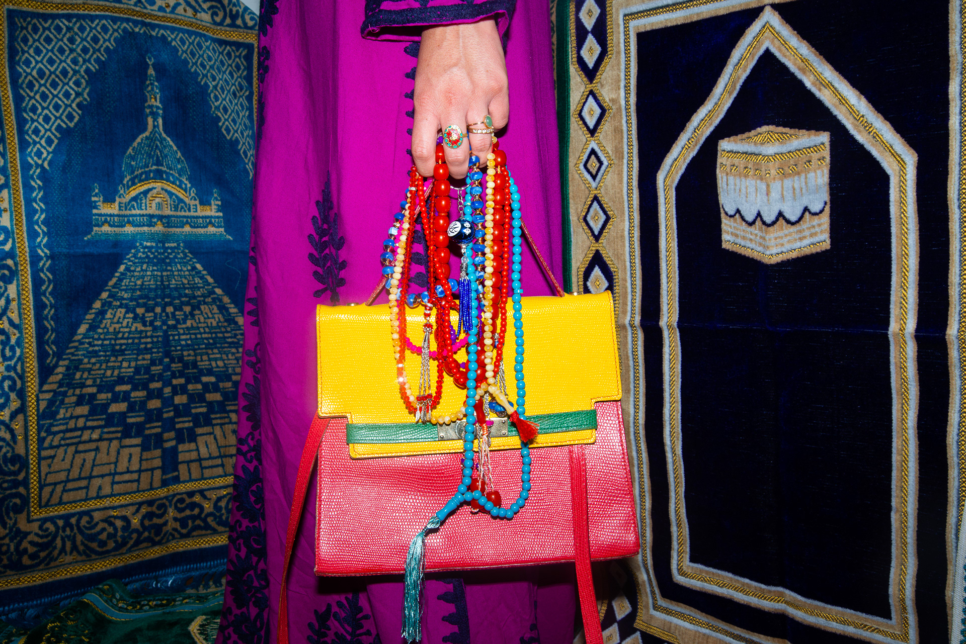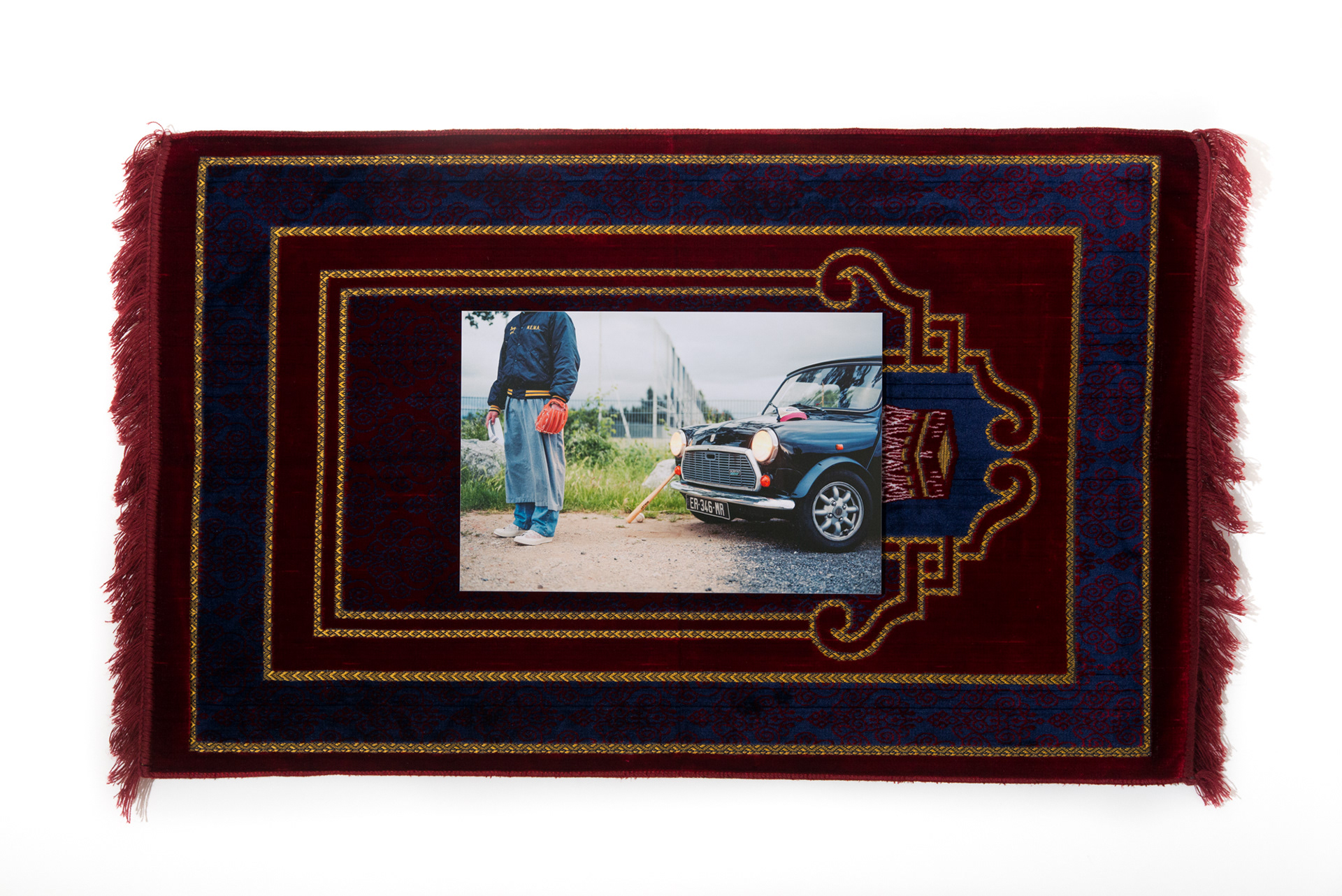 Arabian Psycho, photographie argentique 30x45cm contrecollée et installée sur tapis de prière 65x105cm, Paris, 2021