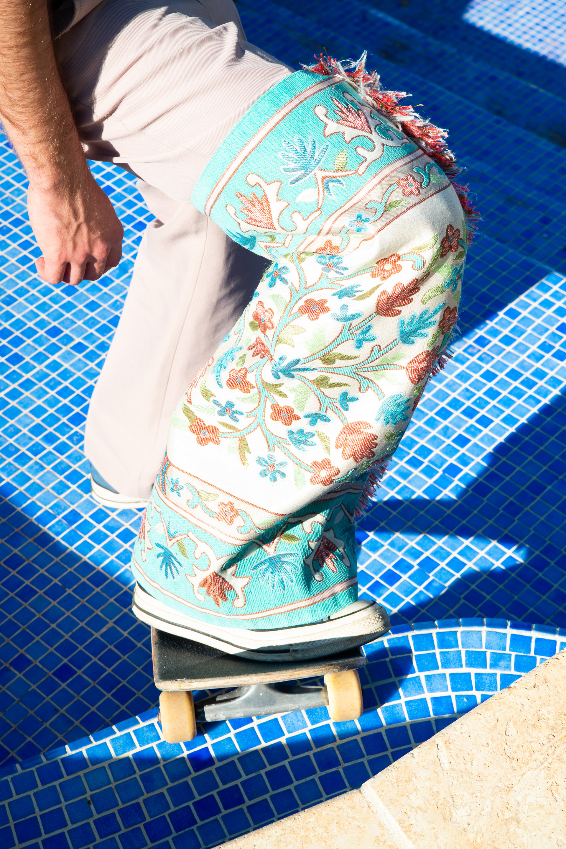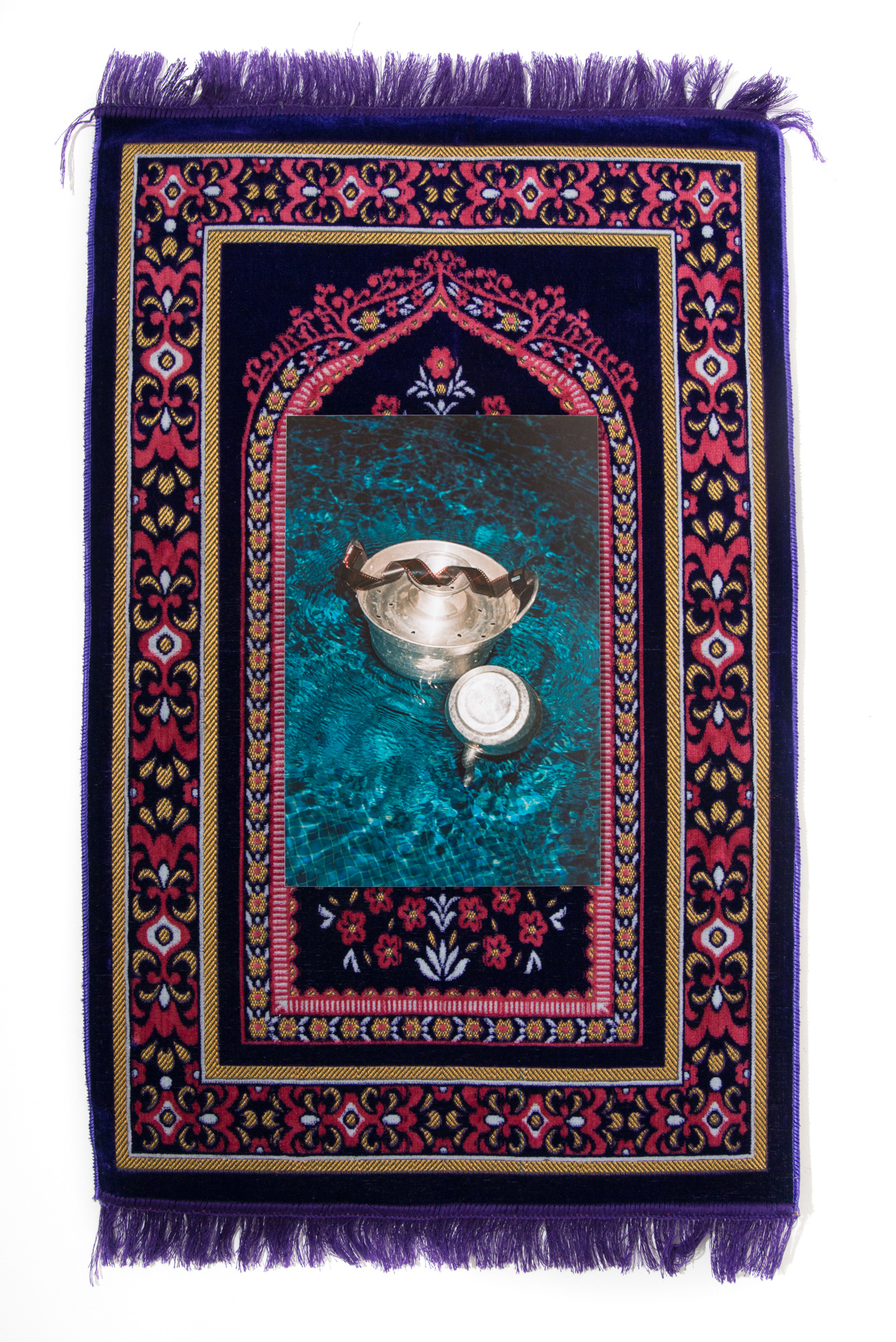 Dans l'eau de Nice, photographie argentique 50x75cm contrecollée et installée sur tapis de prière 80x120cm, Plaisir, 2021