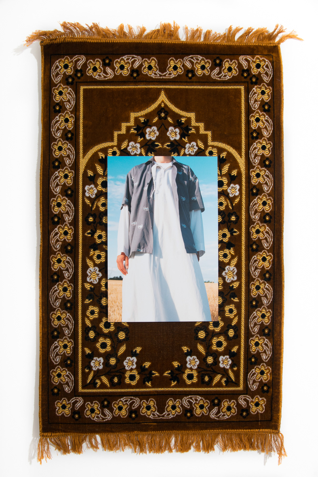 Most Wanted, photographie argentique 30x45cm contrecollée et installée sur tapis de prière 65x105cm, Valence, 2020