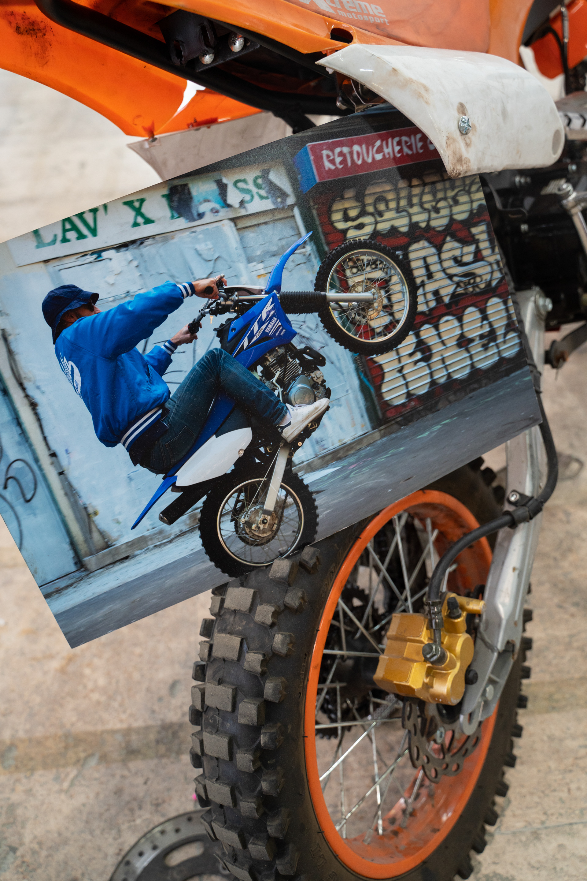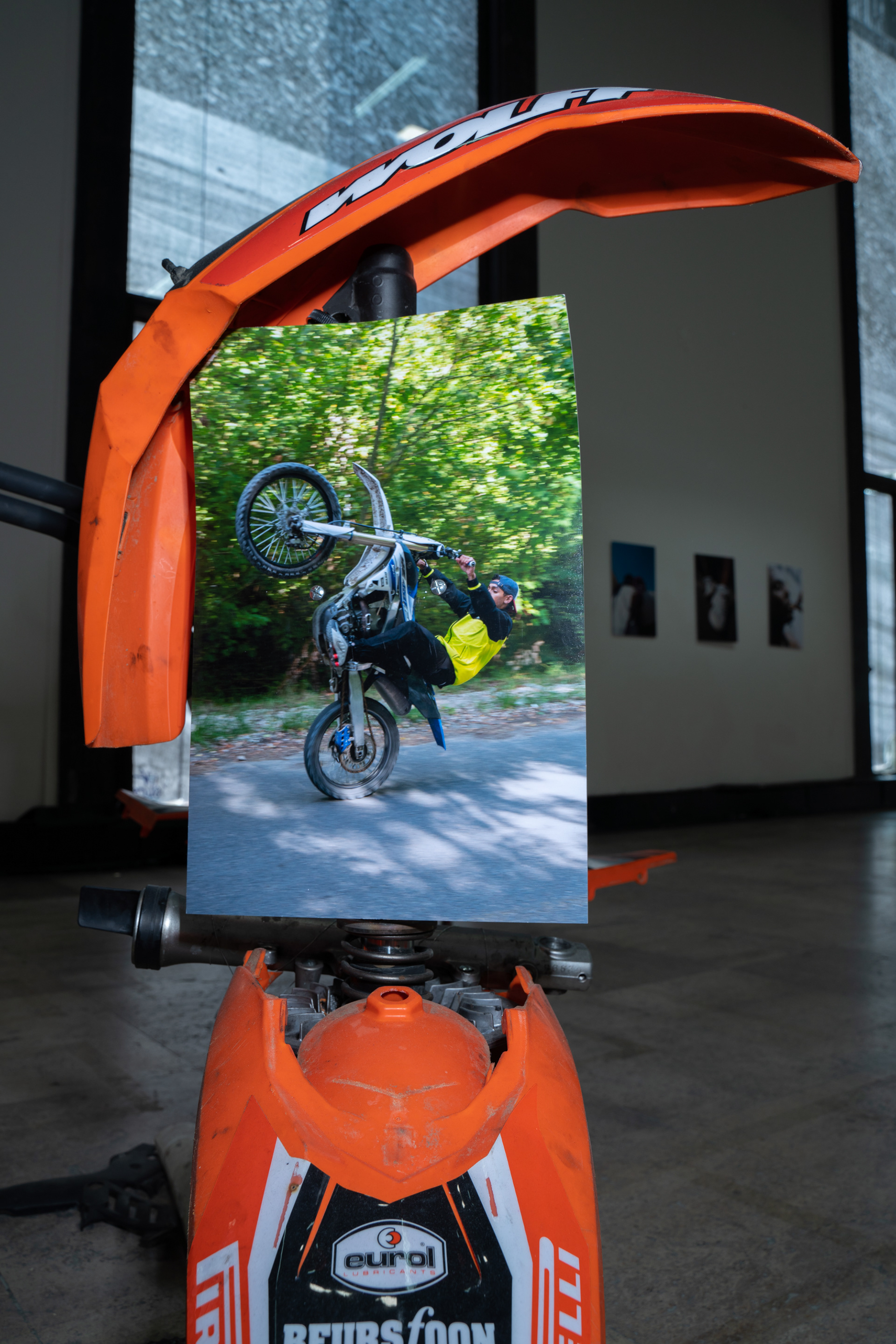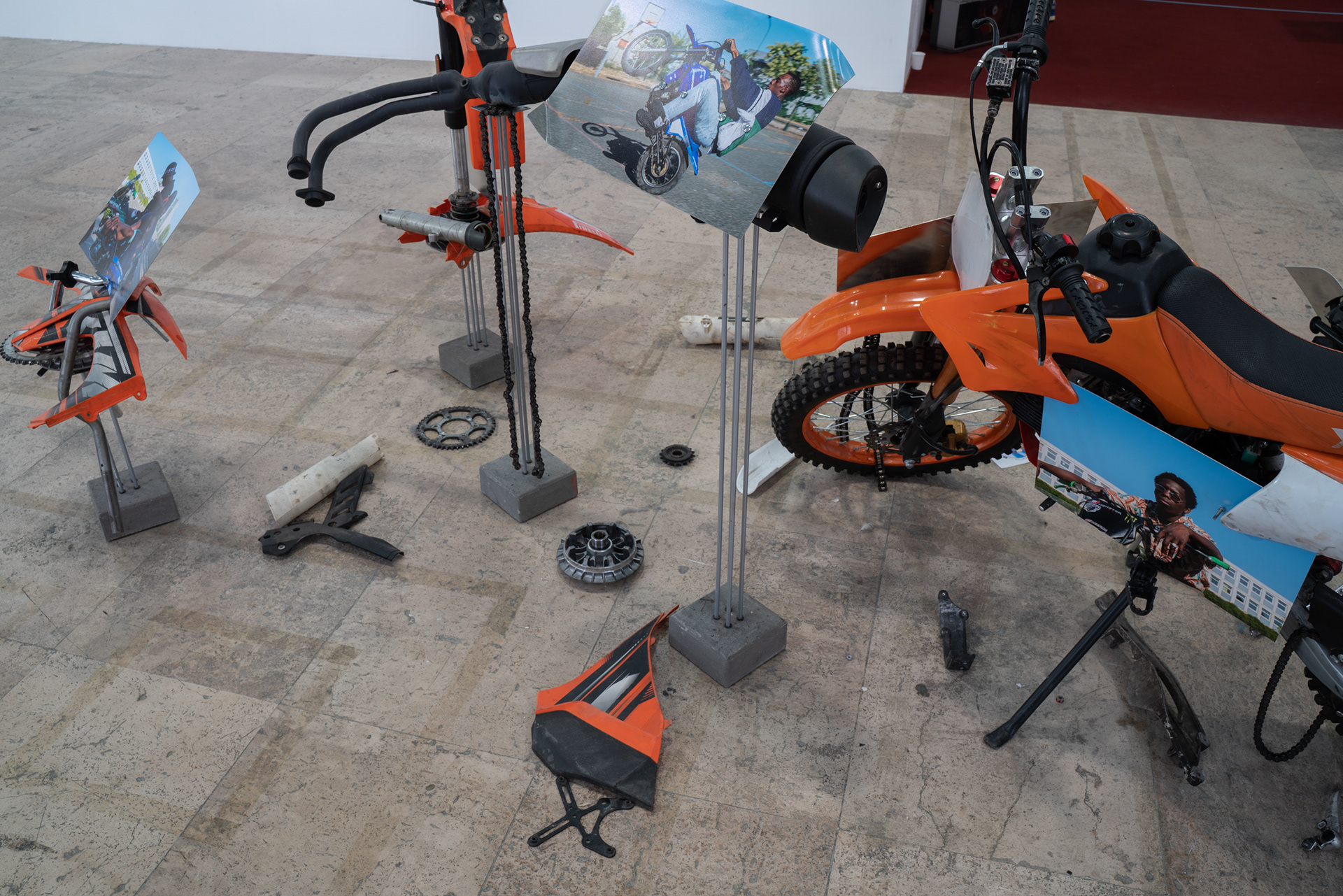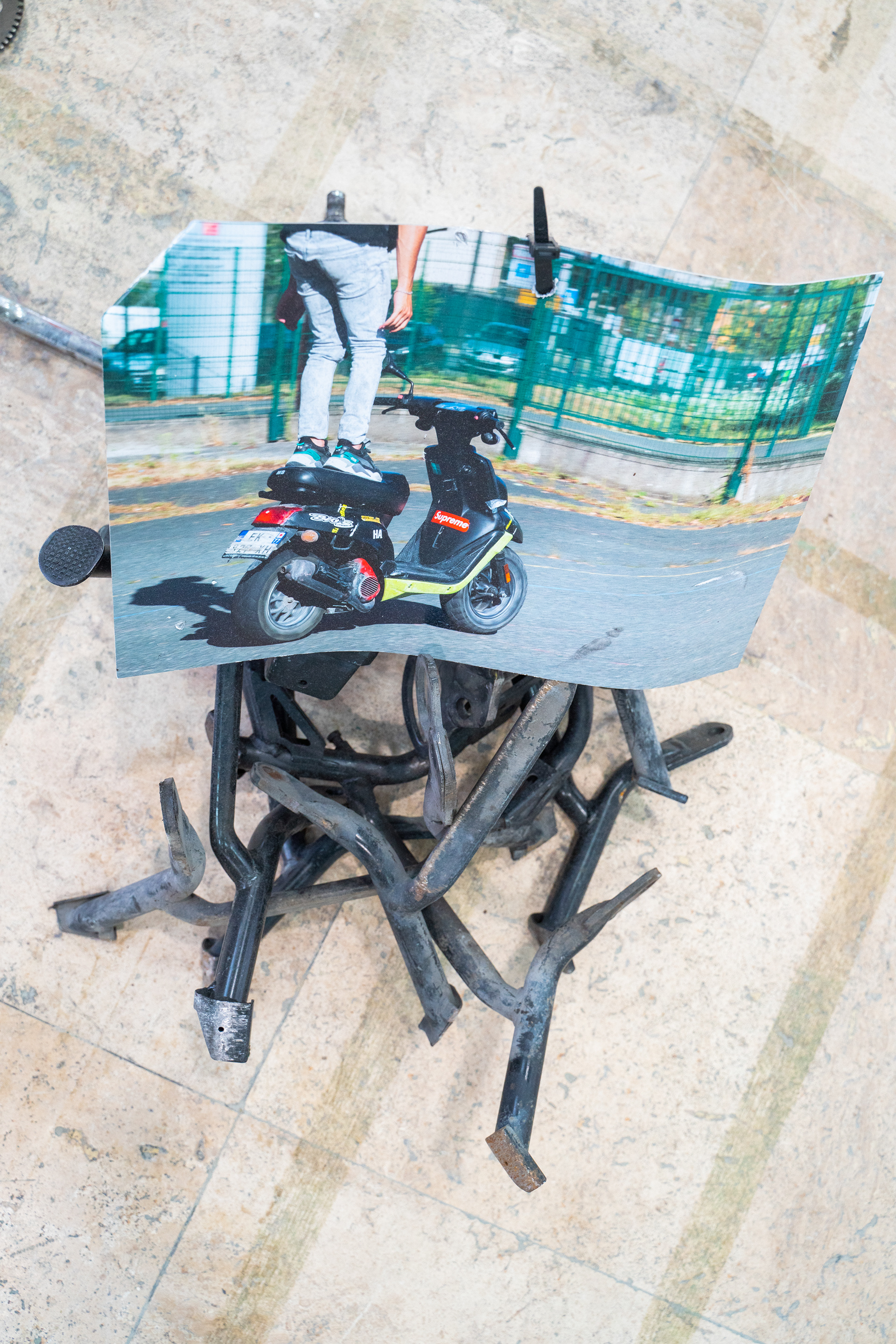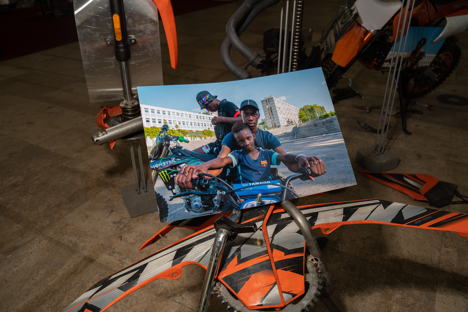 Dans le cadre de l’exposition Jusqu’ici tout va bien, présentée au Palais de Tokyo à l’occasion des 25 ans du film La Haine, de Matthieu Kassovitz ; Ismael Bazri expose une série de photographies et une installation sur les violences policières. Son oeuvre rend hommage aux jeunes victimes blessées et tuées sur la route, lors des courses poursuites en moto cross. La moto étant un des hobby partagé par de nombreux jeunes en cités ; répondant à un besoin d’adrénaline, une manière de tuer le temps, dans une société où la jeunesse de banlieue est mise de côté. Il réalise pour l’occasion des sculptures en récupérant des pièces détachées de moto accidentées, et compose une installation mélangeant photographies et oeuvres plastiques.